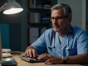 Default_Un_mdico_sentado_en_su_casa_en_una_computadora_laptop_0